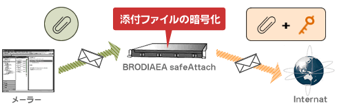 『BRODIAEA safeAttach』は、送信メールの添付ファイルを暗号化するメールゲートウェイサーバです。
