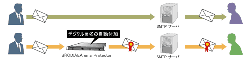 『BRODIAEA emailProtector Signing Edition』は、メールゲートウェイとして動作致します。ご利用中のネットワークにも簡単に導入できます。